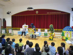 | 開催日 平成29年 1月18日(水) 静岡県磐田市二之宮の「磐田市立二之宮保育園」 にて開催。 ○第280回目となる環境教育(みんなで地球さんを助けよう!) は、磐田市二之宮の「磐田市立二之宮保育園」のご依頼にて 年長・年中・年少・1,2歳児の園児100人と保護者を対象に 開催しました。 いつもはゴミおじさんが最初に呼ばれるのに、今日はなぜか ごみらが先に呼ばれちゃった!! たくさんのお母さん達が始めから最後まで一緒にやって くれました。歌のアンコールが出て、みんなで“虹”歌ったよ〜。 |